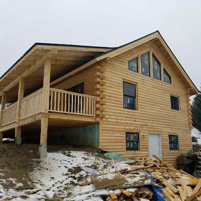 This year round log home was built in Morrisville, Vermont. The kit came from Authentic Log Homes in Hardwick. We handled all parts of the build as the general contractors so the home owners didn’t have to worry about a thing.
